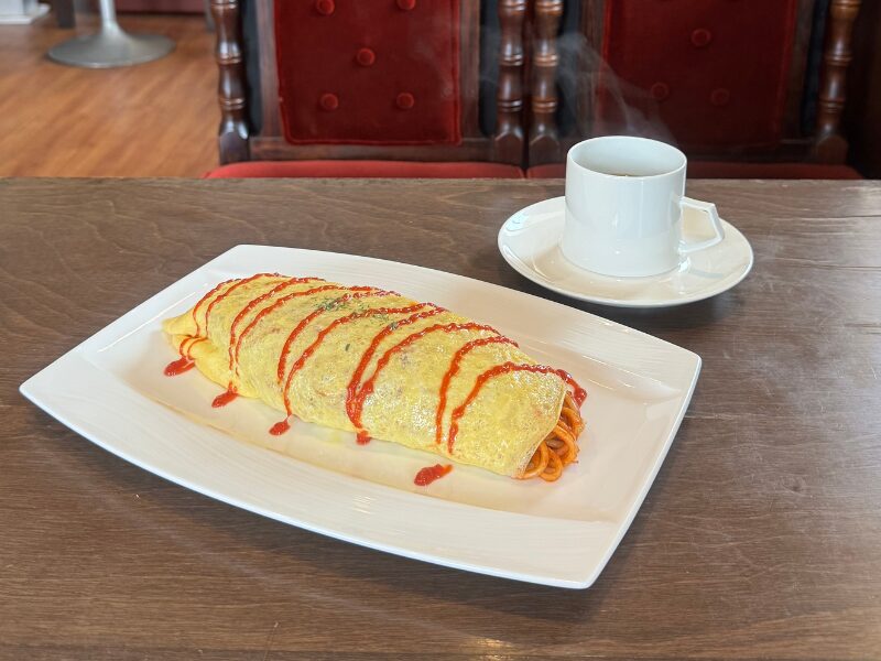 | オム巻ナポリタン | ¥800 | ドリンクセット ¥1,000(コーヒー・コーラ・ミルク) |