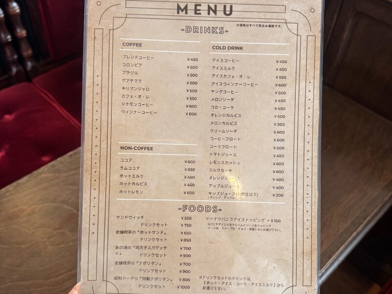 そのほか、ウインナーコーヒーやココアなど甘いドリンクもあり、カフェタイムにも利用しやすい喫茶店です。