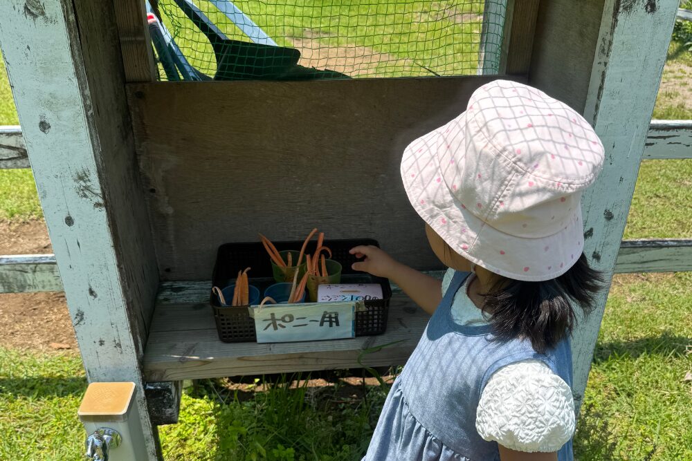 対象は馬・ポニー・うさぎ・犬・猫と幅広く、どの動物も人懐っこくて、手からパクパク食べてくれる姿がとてもかわいらしいです。