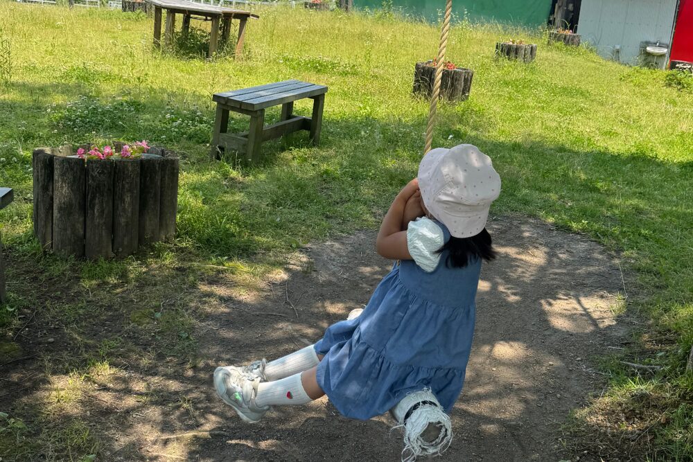 広場の一角には、手作りのブランコが設置されていて、子どもたちに大人気!