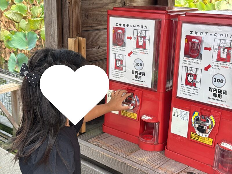 エサはガチャガチャで購入するので、子どもは大喜びです。