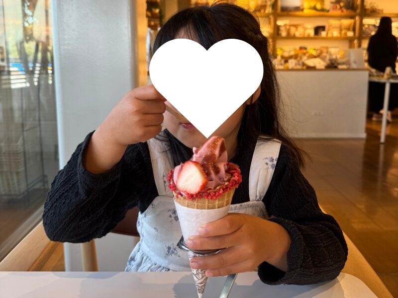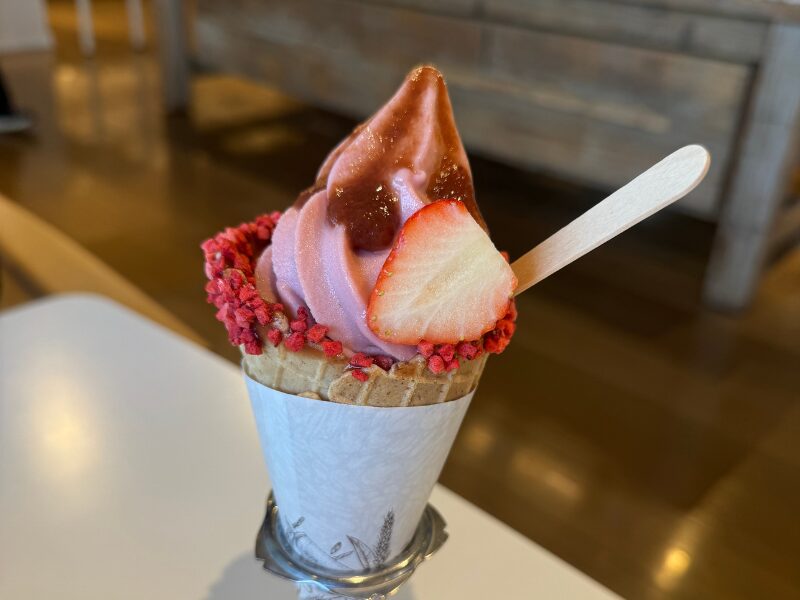 今回は贅沢苺ソフトクリームを注文(600円)しましたが、見た目も華やかで気分が上がる一品でした。